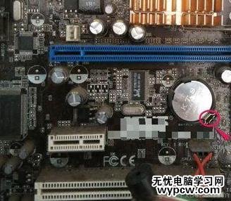 3、通常隔上1分鐘將電池安上去這樣就清除了CMOS密碼,并且我們開機后CMOS中自己設置的信息全部丟失,我們還需要進行設置,小編習慣取下電池后將這里短接一下,當然據我了解不短接這里也是可以清除CMOS密碼的。