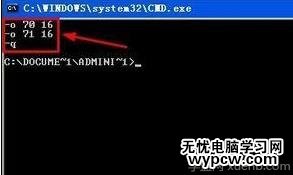 我們這里可以依次輸入C:/>debug 回車;o 70 16 回車;o 71 16回車;q 回車。