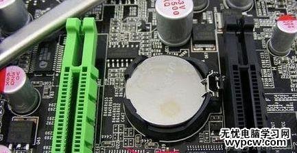 4、當然現在很多主板上CMOS電池旁邊通常有跳線可以清除CMOS密碼,我們就不需要卸下電池了,電池旁邊我們找到psWD的跳線,然后按照說明操作。或者有些主板這里顯示的是CLEAR CMOS,大家一定要在電腦斷電下操作。