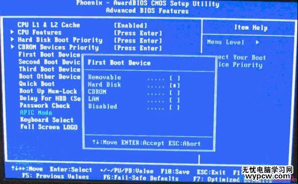 上圖2:高級BIOS設(shè)置(Advanced BIOS Features)界面,首先選擇硬盤啟動優(yōu)先級:Hard Disk Boot Priority