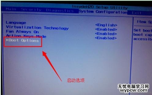 在system configuration選項卡中,找到”boot options”也就是啟動設置