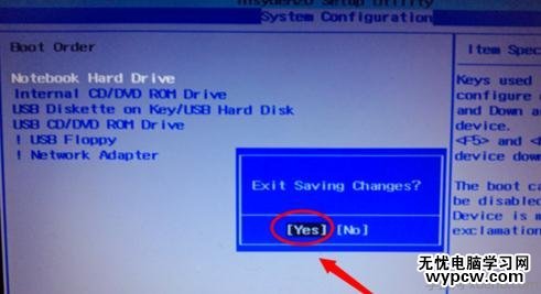 4如果設置好之后,選擇按下F10鍵盤。保存并退出BIOS設置(選項 YES)