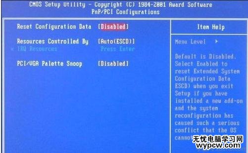 在主菜單中用方向鍵選擇“PNP/PCI Configurations”項然后回車,即進入了
