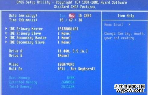 在主菜單中用方向鍵選擇“Standard CMOS Features”項然后回車,即進入了