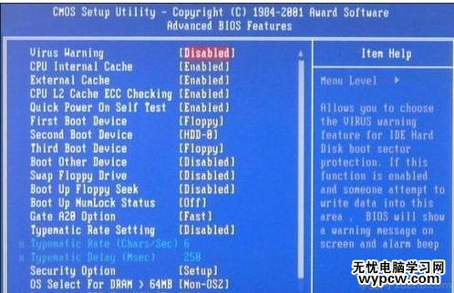 在主菜單中用方向鍵選擇“Advanced BIOS Features”項然后回車,即進入了