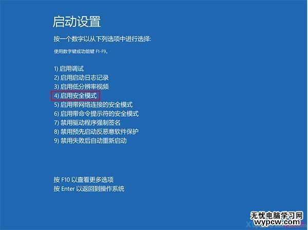 7、重啟后停留在選擇畫面,按鍵盤“4”或者“F4”鍵進入安全模式