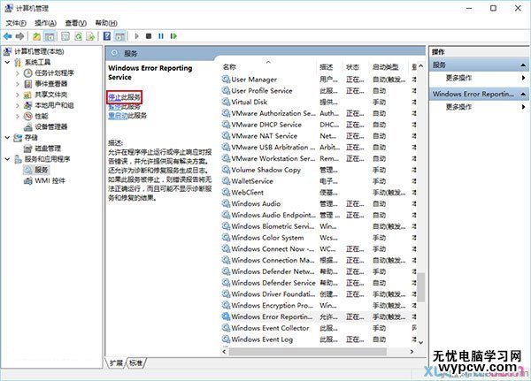 11、再找到 windows Error Reporting Service,單擊后同樣在左側(cè)點擊“停止此服務(wù)”