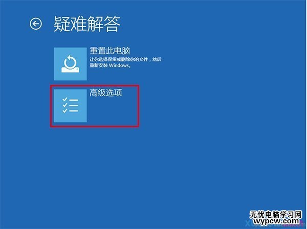 3、重啟后,進入第一個選擇畫面,點擊“疑難解答”