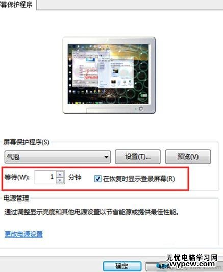 2、任意選擇一個屏幕保護程序,把“在恢復時返回到歡迎屏幕”前的復選框上打鉤。然后點擊“確定”。