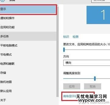 然后我們會進入系統設置界面,在顯示里面找到高級選項設置。