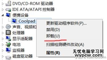 卸載完成后設備管理器將找不到便攜設備這一選項,插上數據線后稍等幾十秒然后會電腦提示你設備已連接。