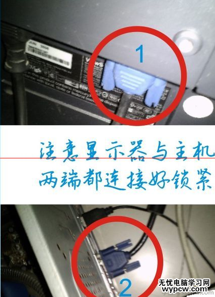 2、檢查電源,插座,電源線等接線,如果電源,插座都可以正常使用及接線都OK,把連接線接好鎖緊,試看看,注意顯示器與···主機兩端都連接好鎖緊