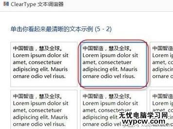 接下來(lái)就根據(jù)提示選擇在你顯示器顯示得最清晰的字,選擇后,系統(tǒng)將以選擇的這個(gè)字體清晰度顯示。