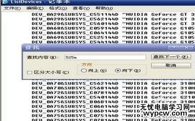 3、解壓驅動文件到C盤,找到C:/NVIDIA/DisplayDriver/270.61/WinXP/International/Display.Driver/文件夾內ListDevices.TXT,打開后搜索(ctrl+f)第一個 “NVIDIA GeForce GT 525M”修改前段文字“DEV_0DEC&SUBSYS_FDD01179”同硬件ID。