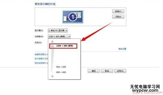 2、打開屏幕分辨率頁面后,在分辨率設置下拉框中,將分辨率調節到最高(推薦),然后點擊“確定”按鈕,如下圖所示: