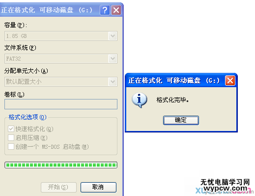 7、待進度條走完后,并提示格式化完畢,點擊【確定】即可。