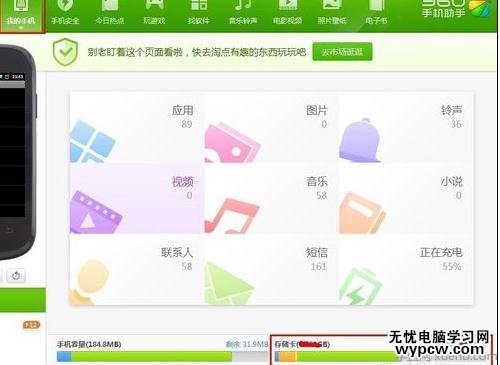 再次通過手機助手里的"我的手機"查看,就可以看到此時SD存儲卡已讀取到了.操作完成.