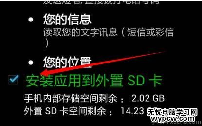 2,加好內存卡后,我們重啟一下手機,這樣內存卡才能正常的讀取,然后安裝軟件的時候,我們需要注意一下,會有一個安裝軟件至SD卡,勾選好之后再去安裝