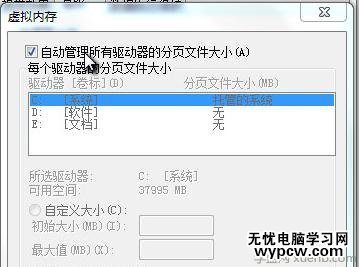 如果沒有設(shè)置Windows虛擬內(nèi)存,那么很容易收到“內(nèi)存不足”的消息。Win7: 點擊 控制面板——系統(tǒng)——高級系統(tǒng)設(shè)置。在“系統(tǒng)屬性”對話框中,單擊“性能”選項卡設(shè)置,然后點擊"高級"。在"虛擬內(nèi)存"設(shè)置中,選擇“自動管理所有驅(qū)動 器的分頁文件大小”選項,將計算機中可作為虛擬內(nèi)存使用的硬盤空間量設(shè)置為默認值。