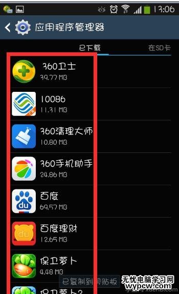 進(jìn)入后先點擊“清除數(shù)據(jù)”再點擊“移動SD卡”(清除數(shù)據(jù)后該軟件的數(shù)據(jù)全部消失的,這個看個人要求,不需要的就不用清楚數(shù)據(jù))