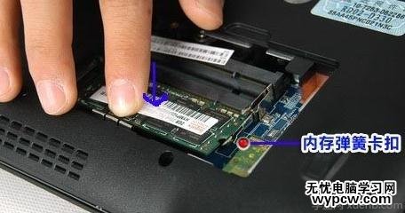 如果你的內(nèi)存插槽僅有一個(gè),那么升級(jí)內(nèi)存就需要使用替換法,將老內(nèi)存替換掉,這就需要先將原有內(nèi)存拆除。而方法很簡(jiǎn)單,內(nèi)存兩側(cè)會(huì)有兩個(gè)彈簧卡扣,用左右手的手指尖將卡扣搬開,內(nèi)存就會(huì)自動(dòng)彈出,然后取下即可。
