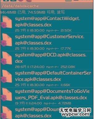 第二種方法是打開RE文件瀏覽器,將/data/dalvik-cache 這個文件夾里面的都是系統緩存文件和卸載定制程序留下來的無用垃圾,可以放心全部刪除;