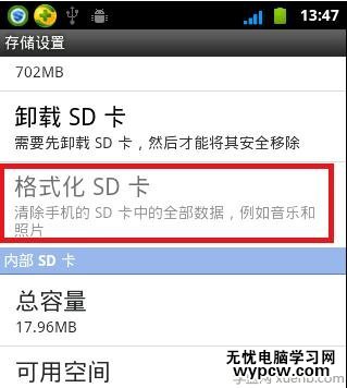 當手機內存卡還是出現讀不出來的現象時,一種最為直接的方法就是利用手機自帶的工具對內存卡進行格式化操作。具體操作方法:進入手機“設置”列表,找到“存儲”選項并點擊,并打開的列表中選擇“格式化SD卡”項進行手機內存卡的格式化操作。