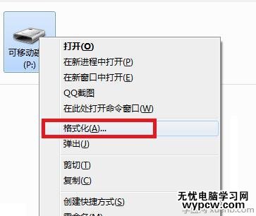 隨后打開“我的電腦”,在新增加的盤符上右擊,選擇“格式化..."菜單項,在打開的”格式化“窗口中將文件系統設置為”FAT32“,最后點擊”開始“按鈕進行操作。格式化完成后,就可以再次裝回手機,測試能否正常使用。