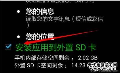 加好內(nèi)存卡后,我們重啟一下手機,這樣內(nèi)存卡才能正常的讀取,然后安裝軟件的時候,我們需要注意一下,會有一個安裝軟件至SD卡,勾選好之后再去安裝