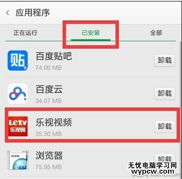 我們點擊進入應用程序可以看到我們正在運行和安裝的所有程序和軟件,我們點擊【已安裝】,然后單擊進入一個軟件中;
