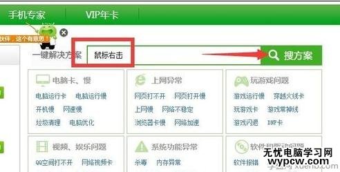 在360電腦專家搜索框中輸入“鼠標右鍵”