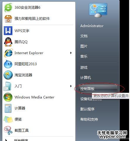 點(diǎn)擊【開始】按鈕,點(diǎn)擊【控制面板】進(jìn)入;