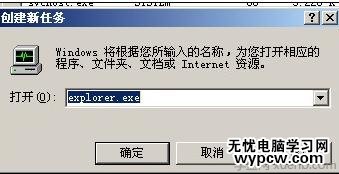 接下來(lái)在彈出的對(duì)話(huà)框中輸入”explorer.exe“,點(diǎn)擊確定,然后一切就正常了。