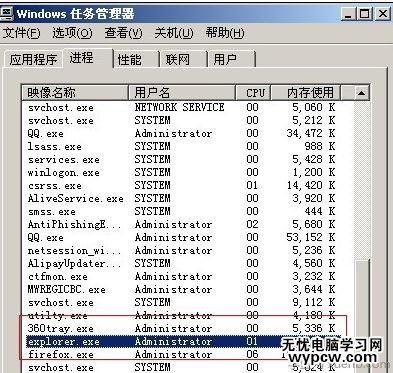 在進(jìn)程中找到 explorer.exe 這個(gè)進(jìn)程單擊一下,然后按”結(jié)束進(jìn)程“按鈕,這時(shí)候桌面都沒(méi)了,不要害怕,看下一步