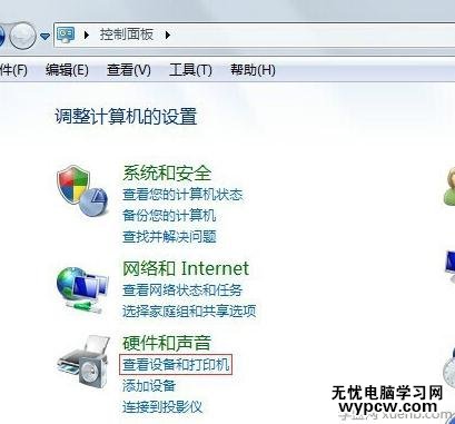 3.點擊“查看設備和打印機”,打開設備和打印機。
