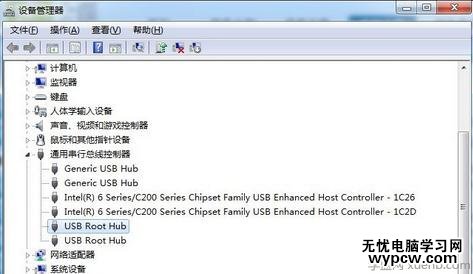 2、在設(shè)備管理器列表中找到并展開(kāi)“通用串行總線控制器”即可看到USB Root Hub。如下圖所示: