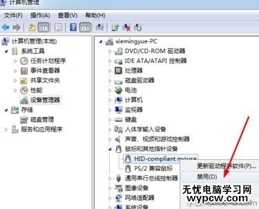 4、右鍵鼠標設備,點擊禁用,然后再啟用;