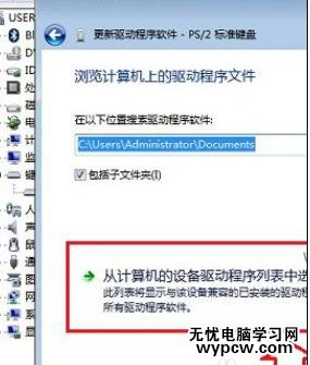 之后會進入瀏覽計算機上的驅動程序文件選擇界面,這里依舊點擊底部的【從計算機的設備驅動程序列表中選擇】,如下圖所示。