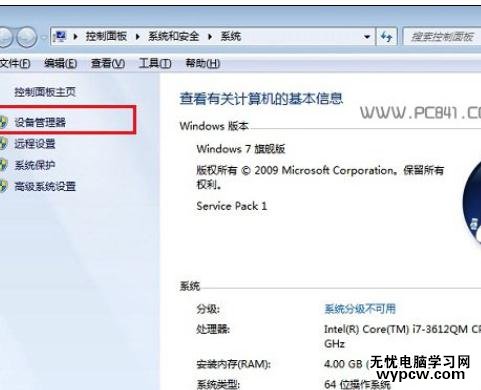打開系統(tǒng)屬性后,點擊進入上角的【設備管理器】,如下圖所示。