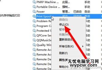 服務(wù)打開之后會(huì)出來(lái)一個(gè)小方框,然后找到Print Spooler,讓他停止,點(diǎn)擊。