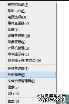 2然后在WIN8桌面下按windows+x組合鍵,選擇“控制面板”: