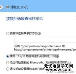 由于是添加網絡打印機,且知道其IP,所以我們這里選擇第二個選項,再單擊“下一步”按鈕: