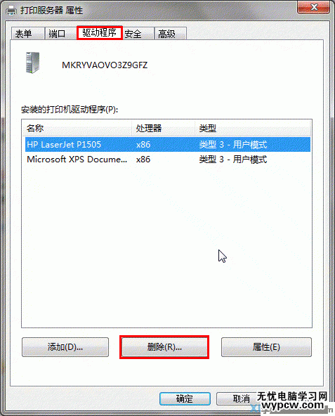 單擊打印服務器屬性--驅動程序--刪除,選擇刪除驅動程序和驅動程序包,點確定;