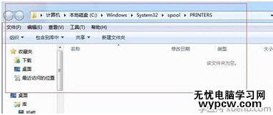 2、刪除路徑 C:/WINDOWS/system32/spool/PRINTERS 下的文件,清空該目錄下的所有文件。