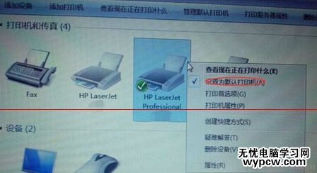 5、然后選中其中需要設置成默認打印機的圖標,點擊右鍵會彈出小窗口,點擊設置成默認打印機即可