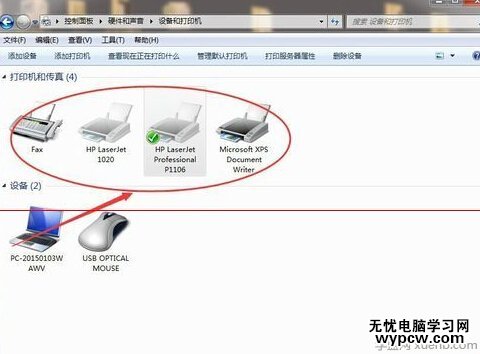 4、然后進入到設備和打印機的窗口,可以看到很多的設備的圖標