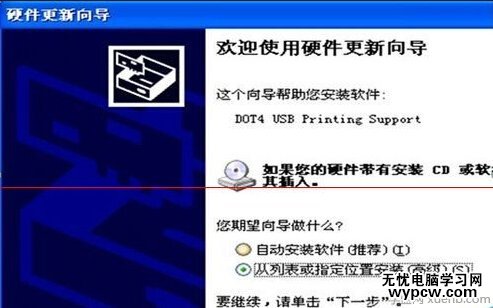 3. 點中 DOT4 USB Printer Support, 右擊 , 選擇重新安裝驅動程序 , 點擊從列表或指定位置安裝 ( 高級 ), 點擊下一步。圖3