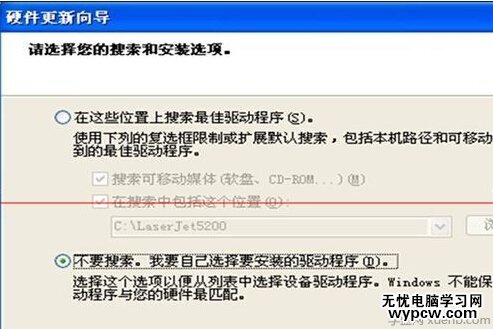 4. 點擊 : 不要搜索 . 我自己選擇需要安裝的驅動程序 (D), 點擊下一步。圖4