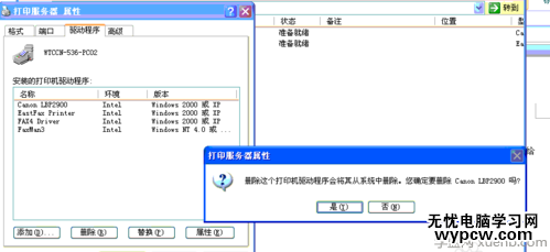 全部刪除(打印機驅動),當點HP2900刪除時,如果提示還在使用不能刪除(前提先把己添加的同型號打印機都刪除),如果刪除打印機時里面有任務以至于不能刪除打印機,到c:/WINNT/system32/spool/PRINTERS這個路徑下的所有文件刪除(可運行services.msc或管理工具到服務里找到print spooler停用再刪除),然后再嘗試刪除打印機