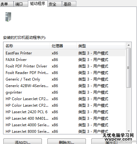 開始—設備和打印機—任意選中一個打印機—打印服務器屬性-驅動程序--看到下面有很多型號驅動,